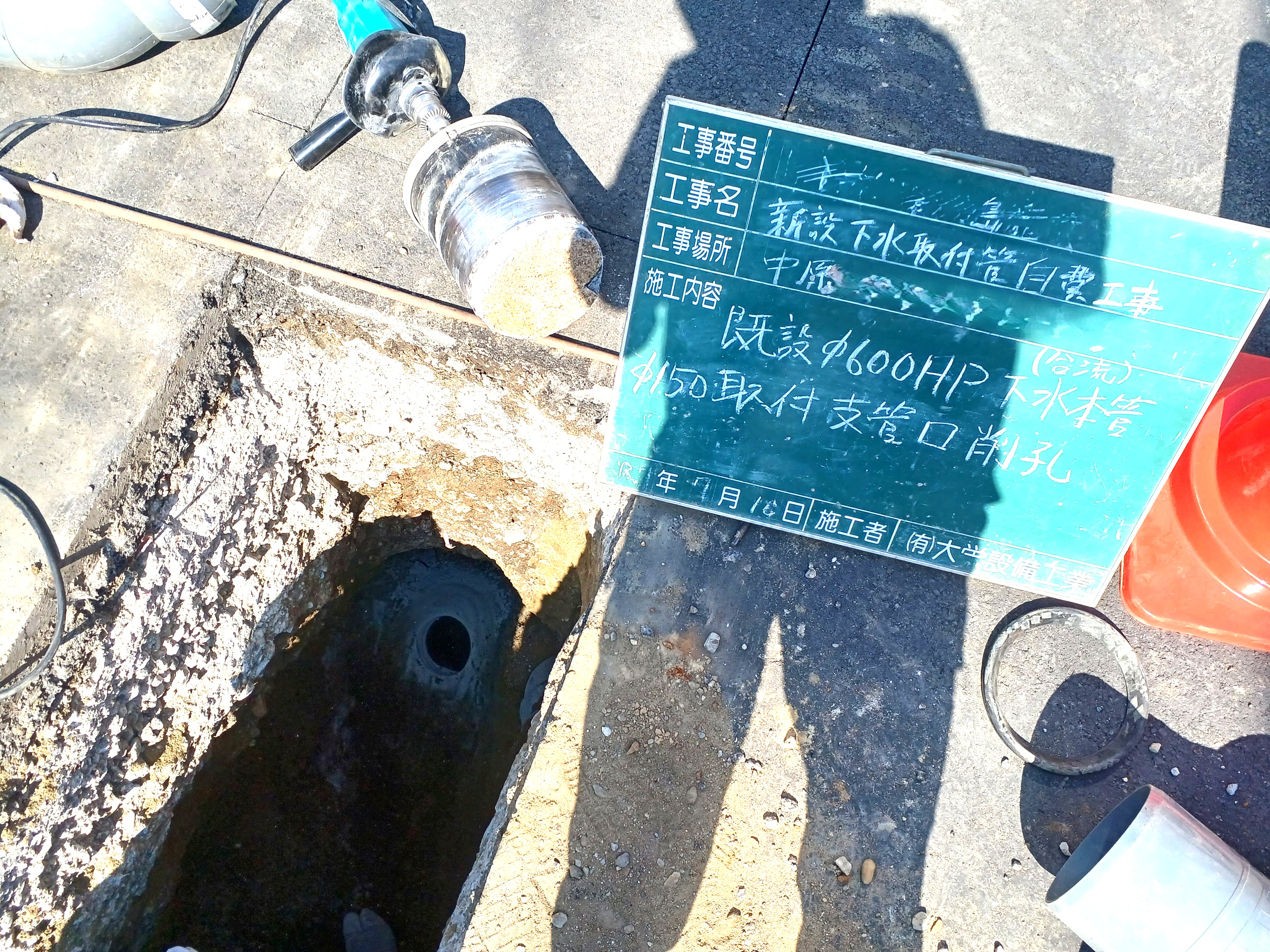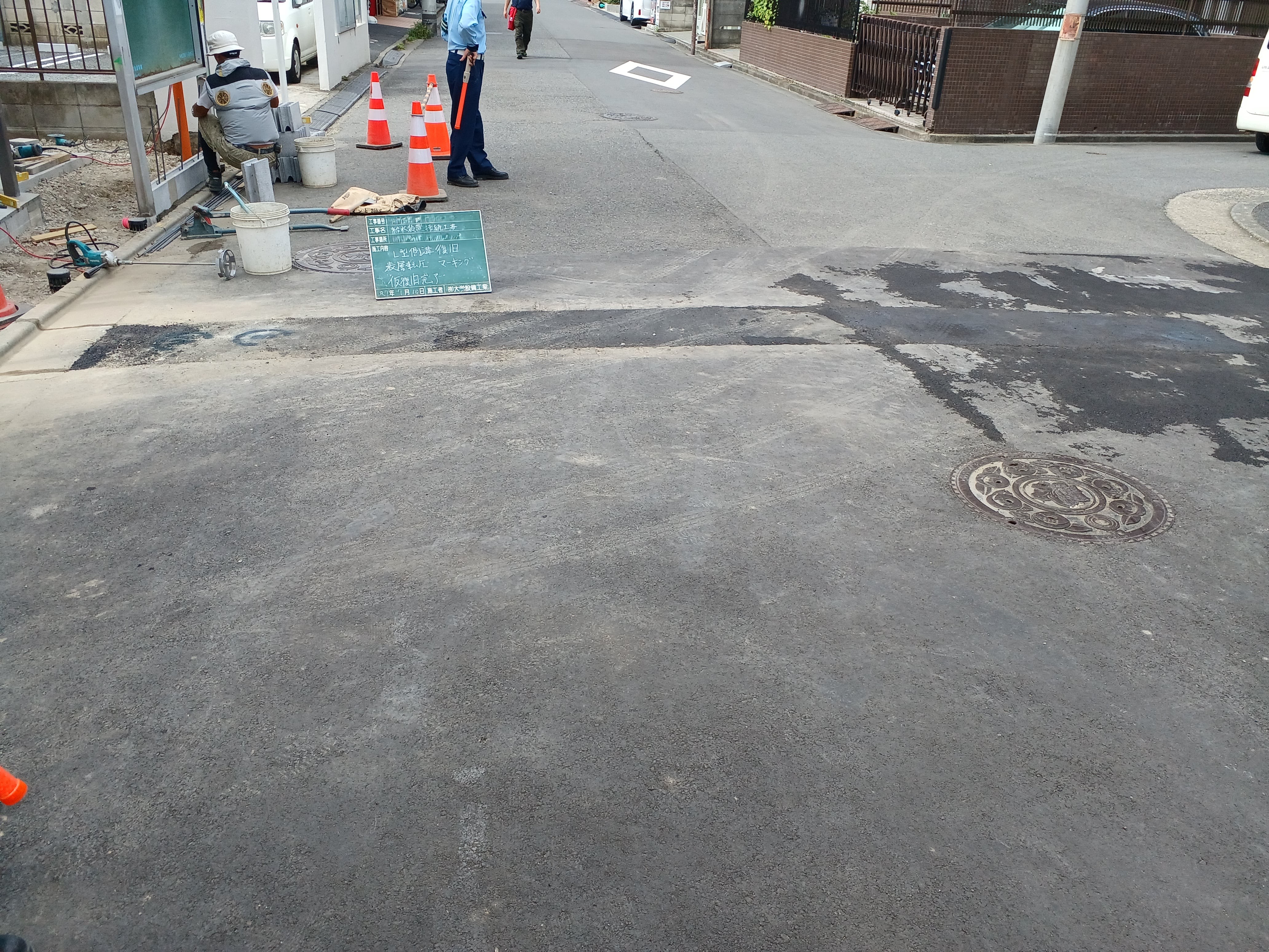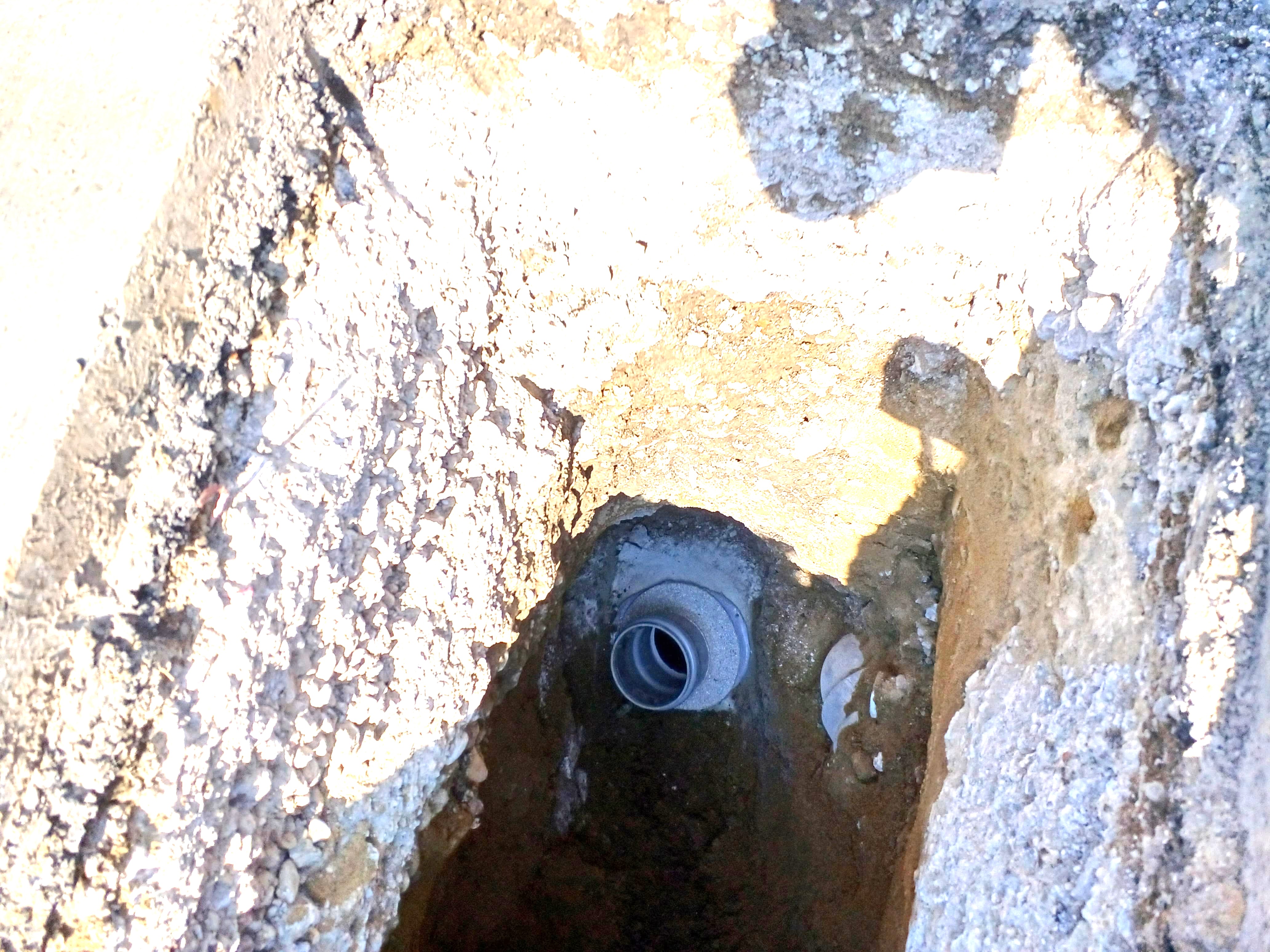 既設舗装の切断・掘削後、所定の深さを確保しながら配管を布設し、勾配・接続状況を確認のうえ施工しております。