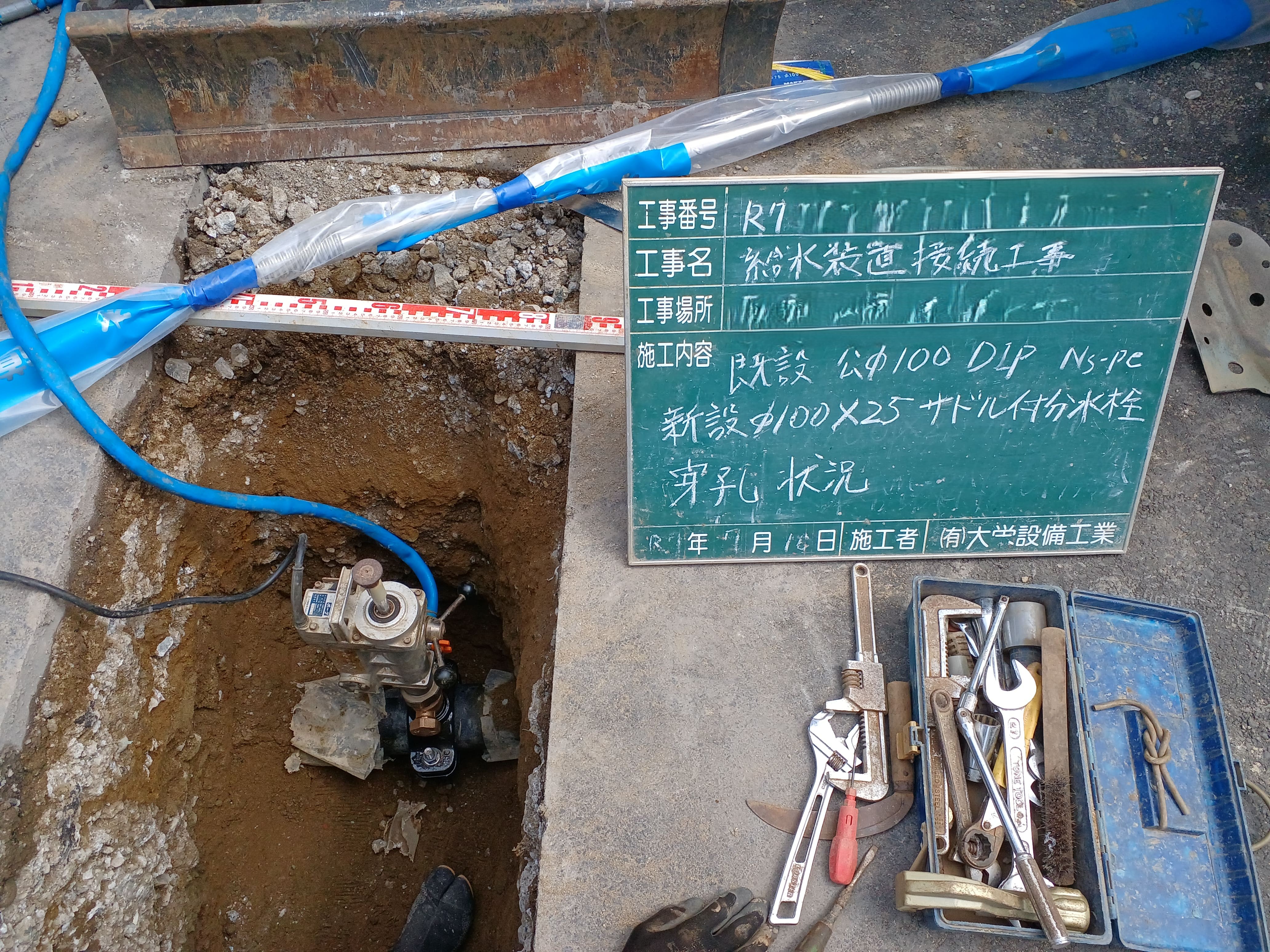 コミュニティハウス新築に伴う上下水管の引き込み工事を行いました。