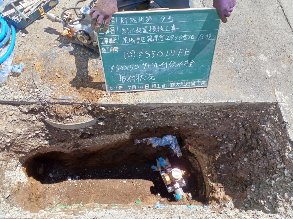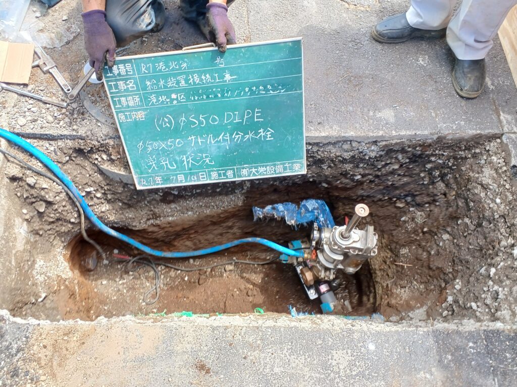 本工事では、各建物への安定した給水を確保するため、適切な管径・ルートの選定を行い、安全かつ確実な施工を実施しております。周辺環境にも配慮しながら、円滑に工事を完了いたしました。